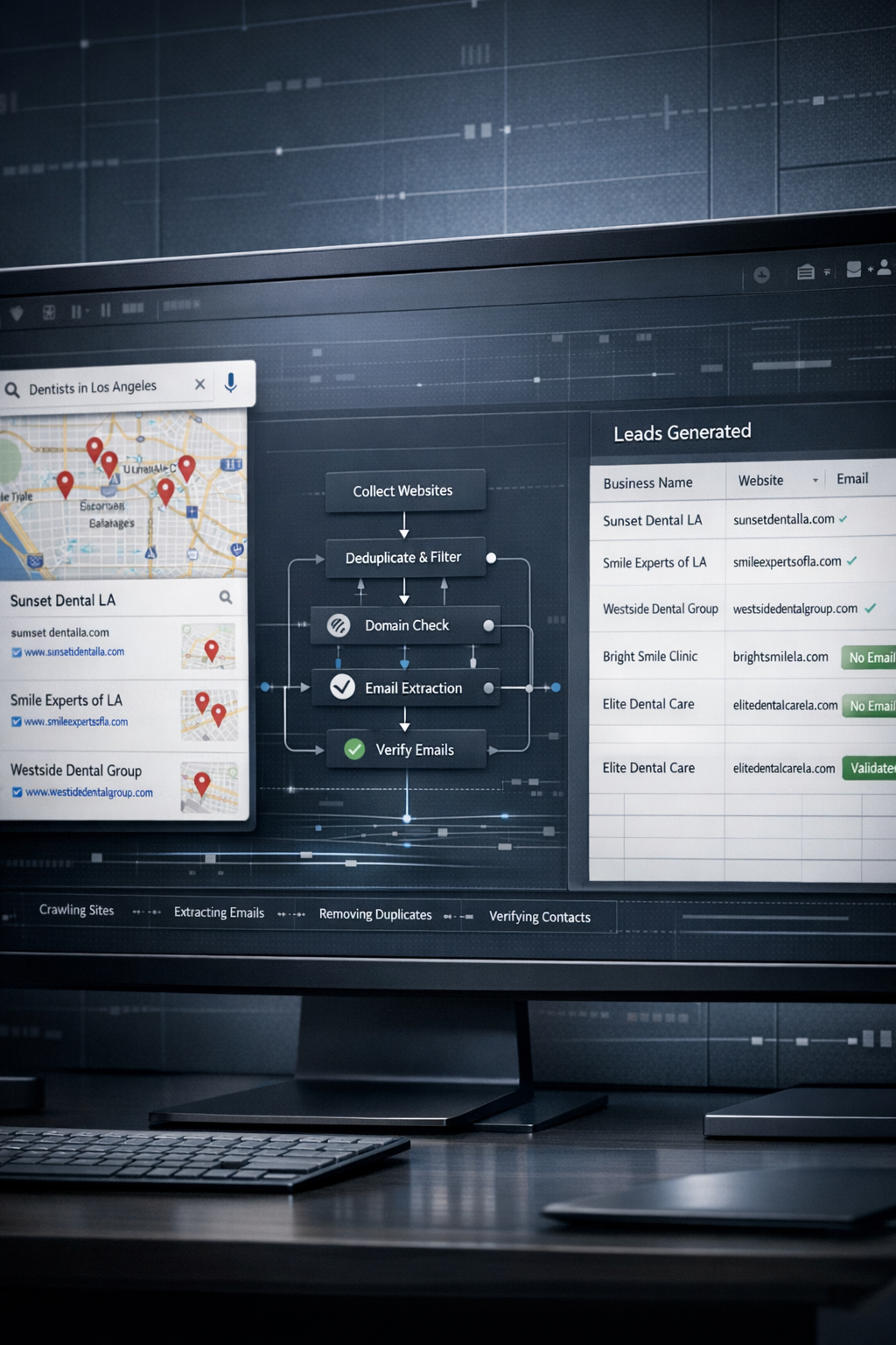 The result: thousands of qualified business listings collected automatically.
