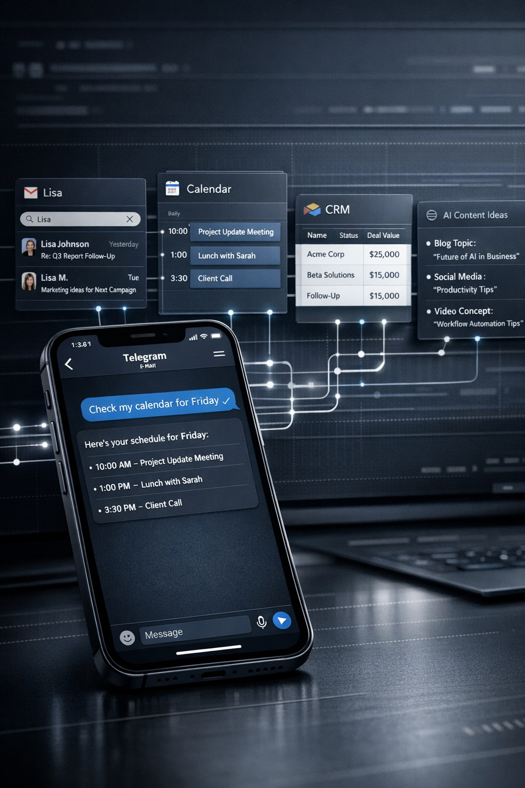 The Personal Assistant Agent is a powerful AI-driven assistant that centralizes your daily professional and personal workflows directly inside Telegram.